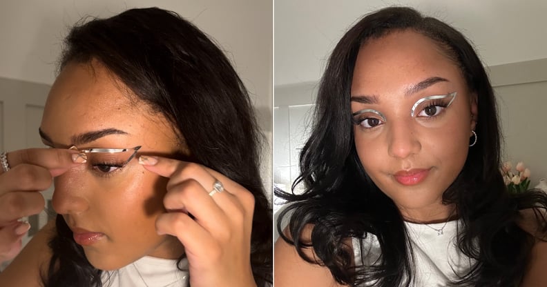 To apply the liners, which Cohen says can be placed on top of makeup but are best used on clean skin, I aligned the sticker with where I wanted it to sit on my eyelid. I aimed for just above my crease, as recommended by Cohen, "so it does not obstruct the movement of the eyelid closing and opening". I stuck the tail end by the outer corner of my eye, before lightly pressing and following the line until it reached the inner corner.